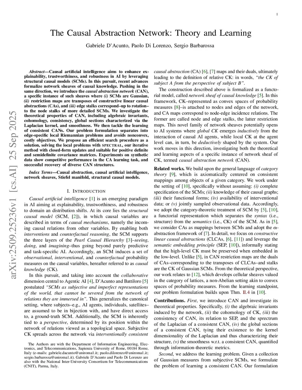 Causal artificial intelligence aims to improve explainability, robustness, and trustworthiness by leveraging causal models. Recent work has shown that sheaf-theoretic approaches offer a principled framework for representing and aligning causal knowledge across collections of subjective and imperfect causal models connected by relational structures. In this work, we introduce the causal abstraction network (CAN), a general sheaf-theoretic framework for representing, learning, and reasoning across collections of mixture causal models (MCMs). CAN formalizes causal abstraction relations among subjective MCMs operating at different levels of granularity, while remaining agnostic to explicit causal graphs, functional mechanisms, interventional data, or jointly sampled observations. At the theoretical level, we provide a categorical formulation of MCMs and characterize key properties of CANs, including consistency, smoothness, and the existence of global sections, which are related to spectral properties of an associated combinatorial Laplacian. At the methodological level, we address the problem of learning consistent CANs from data by exploiting the compositionality of causal abstractions and necessary conditions for their existence. The learning task decomposes into local problems on the network edges, for which we propose efficient solutions in Gaussian and Gaussian mixture settings. We validate the proposed learning methods on synthetic data and illustrate the practical relevance of the CAN framework through a financial application, demonstrating both recovery and counterfactual reasoning capabilities.