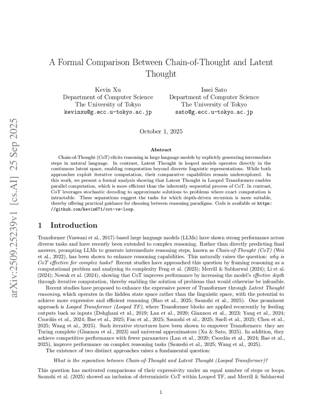 A Formal Comparison Between Chain of Thought and Latent Thought