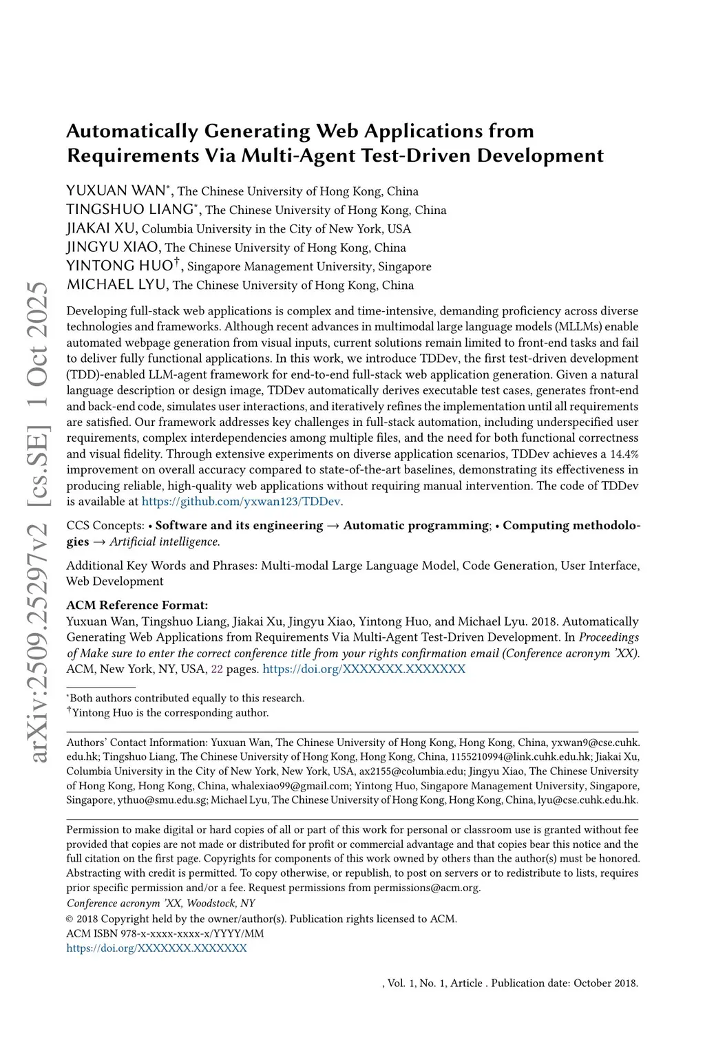 Automatically Generating Web Applications from Requirements Via Multi-Agent Test-Driven Development