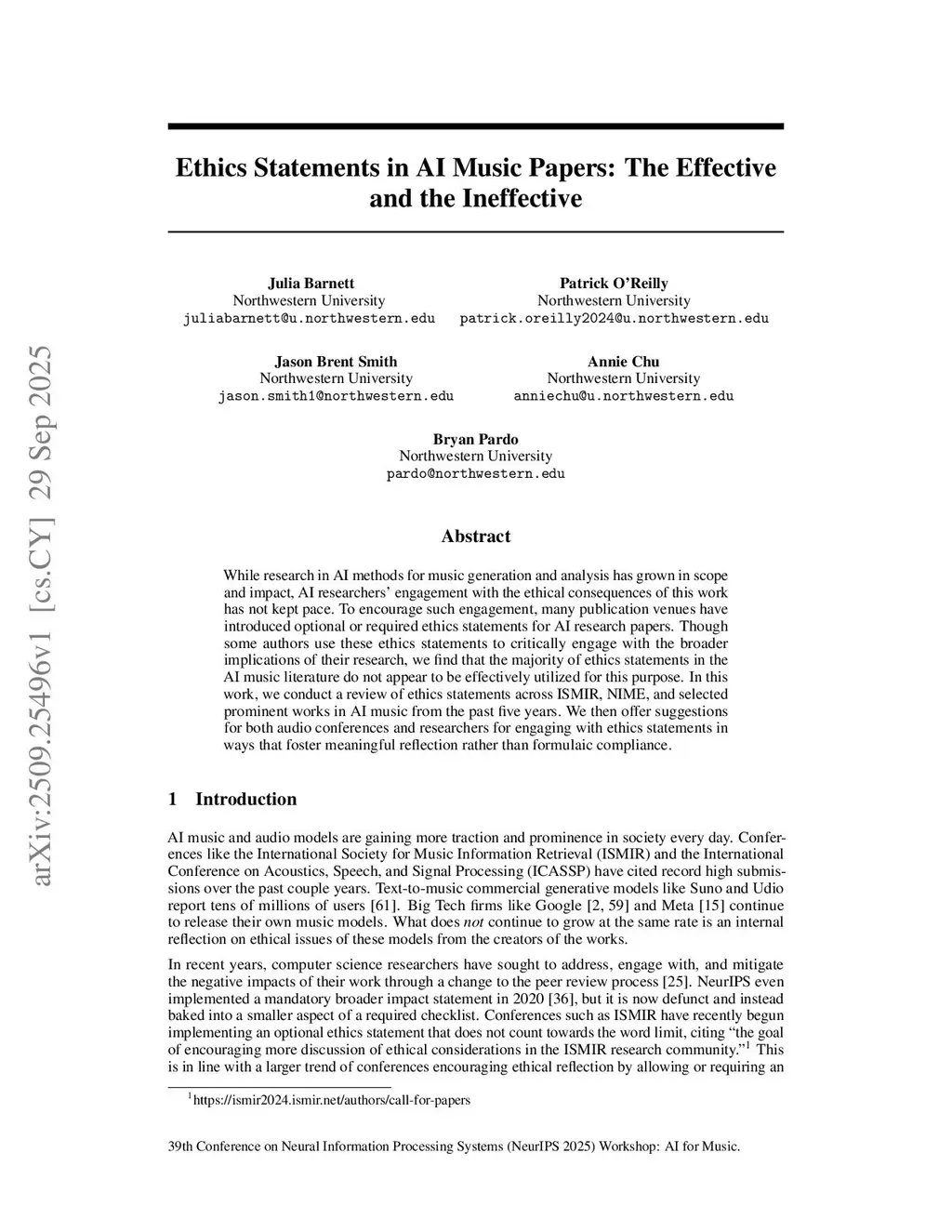 Ethics Statements in AI Music Papers: The Effective and the Ineffective