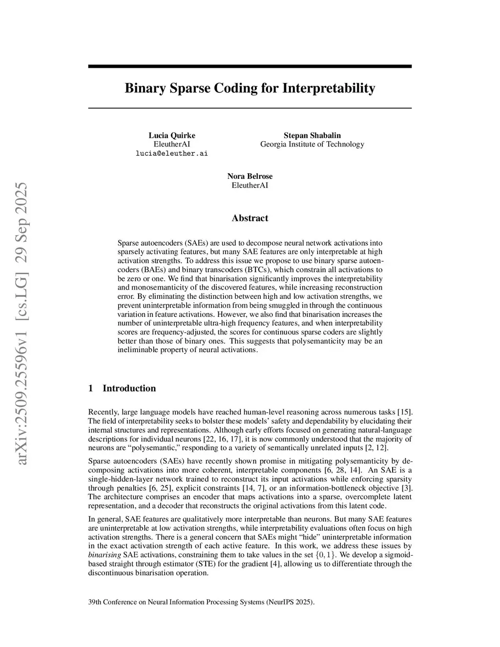 Sparse autoencoders (SAEs) are used to decompose neural network activations into sparsely activating features, but many SAE features are only interpretable at high activation strengths. To address this issue we propose to use binary sparse autoencoders (BAEs) and binary transcoders (BTCs), which constrain all activations to be zero or one. We find that binarisation significantly improves the interpretability and monosemanticity of the discovered features, while increasing reconstruction error. By eliminating the distinction between high and low activation strengths, we prevent uninterpretable information from being smuggled in through the continuous variation in feature activations. However, we also find that binarisation increases the number of uninterpretable ultra-high frequency features, and when interpretability scores are frequency-adjusted, the scores for continuous sparse coders are slightly better than those of binary ones. This suggests that polysemanticity may be an ineliminable property of neural activations.