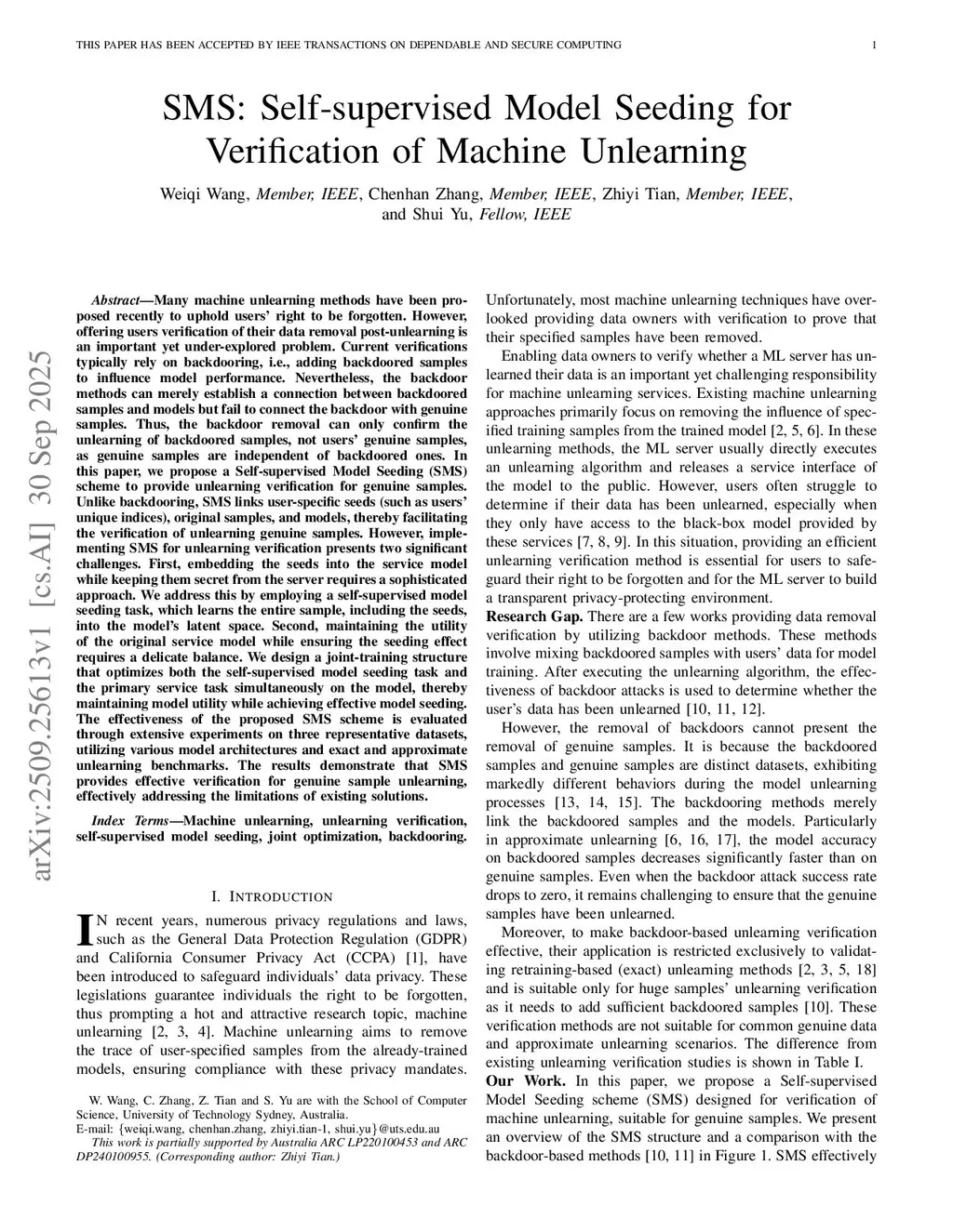 SMS: Self-supervised Model Seeding for Verification of Machine Unlearning