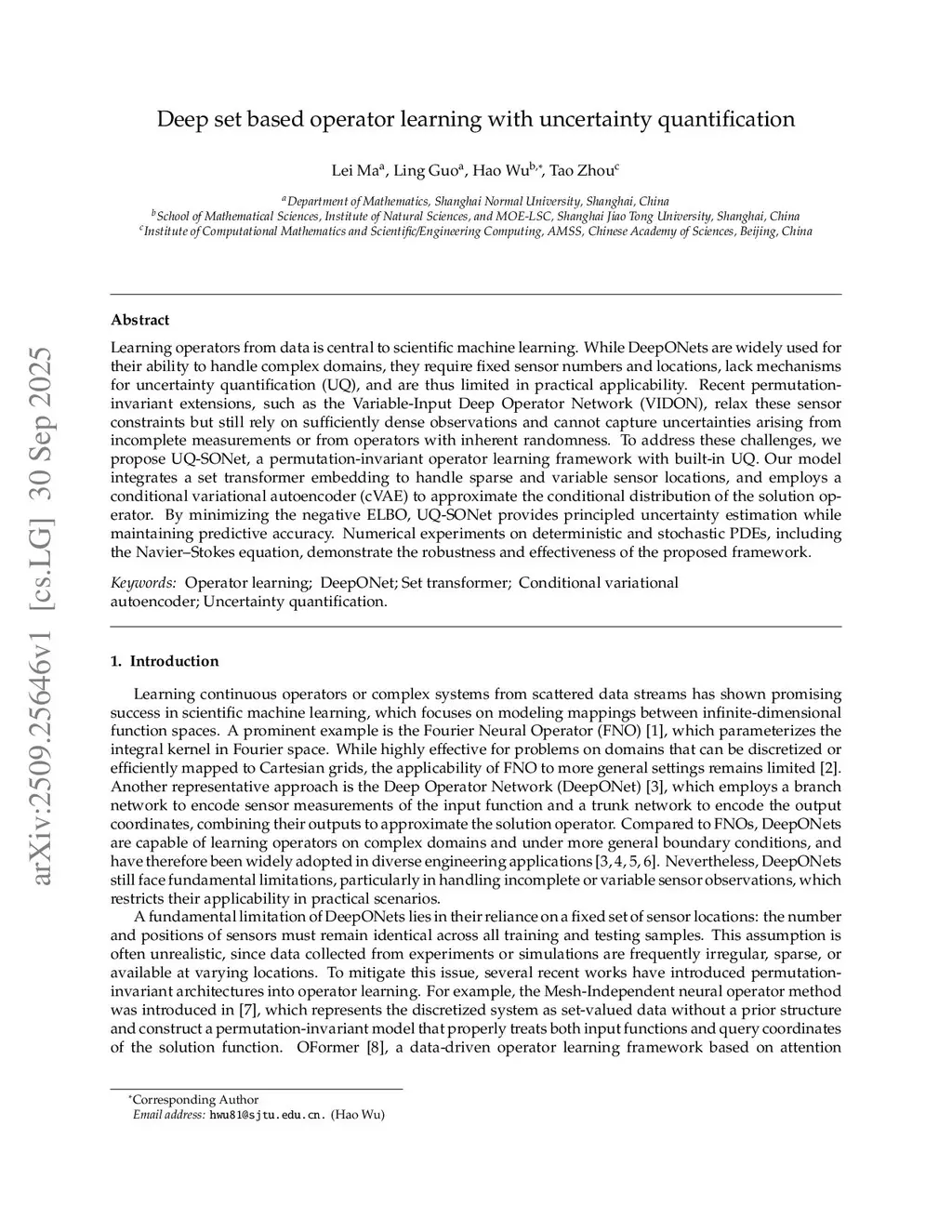 Deep set based operator learning with uncertainty quantification