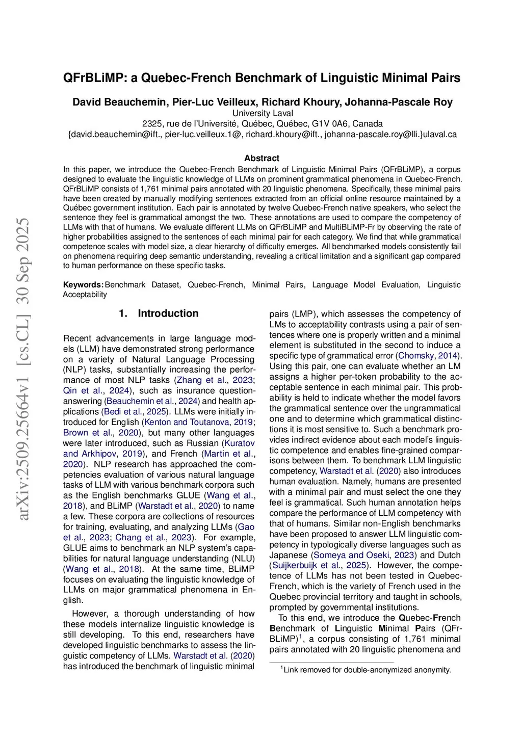 QFrBLiMP: a Quebec-French Benchmark of Linguistic Minimal Pairs