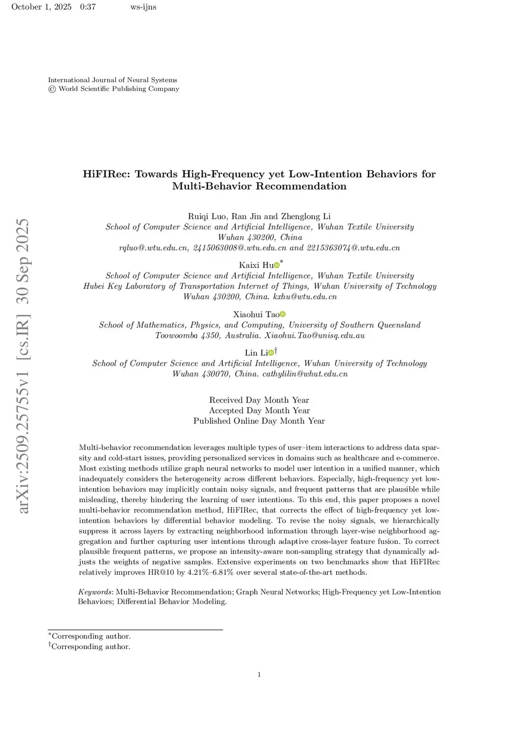 HiFIRec Towards High-Frequency yet Low-Intention Behaviors for Multi-Behavior Recommendation