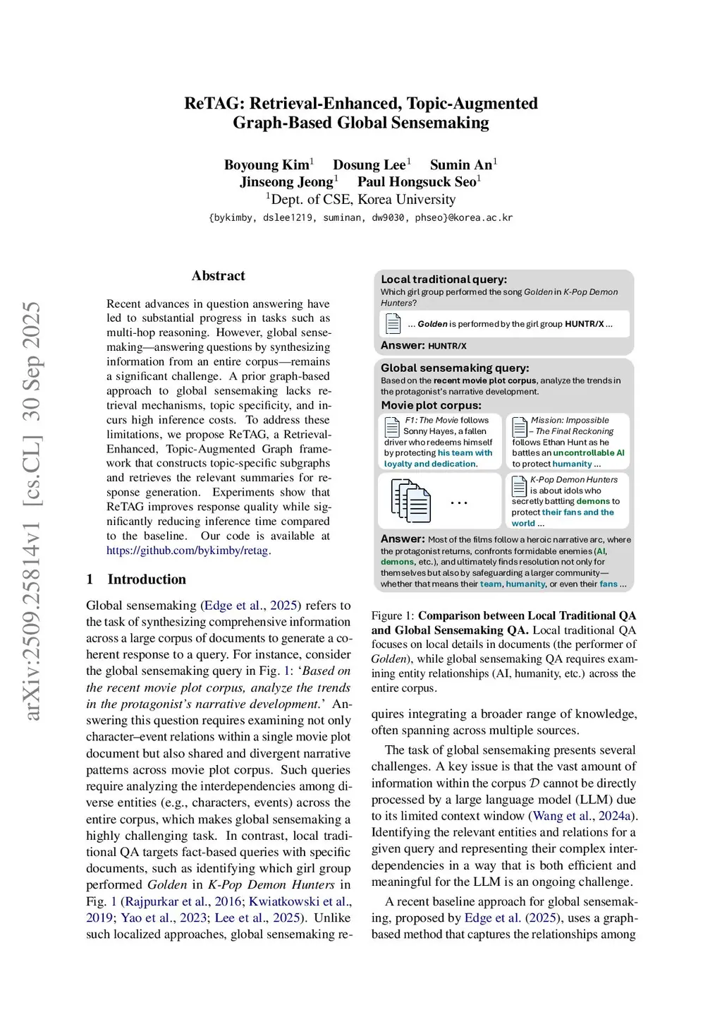 ReTAG: Retrieval-Enhanced, Topic-Augmented Graph-Based Global Sensemaking