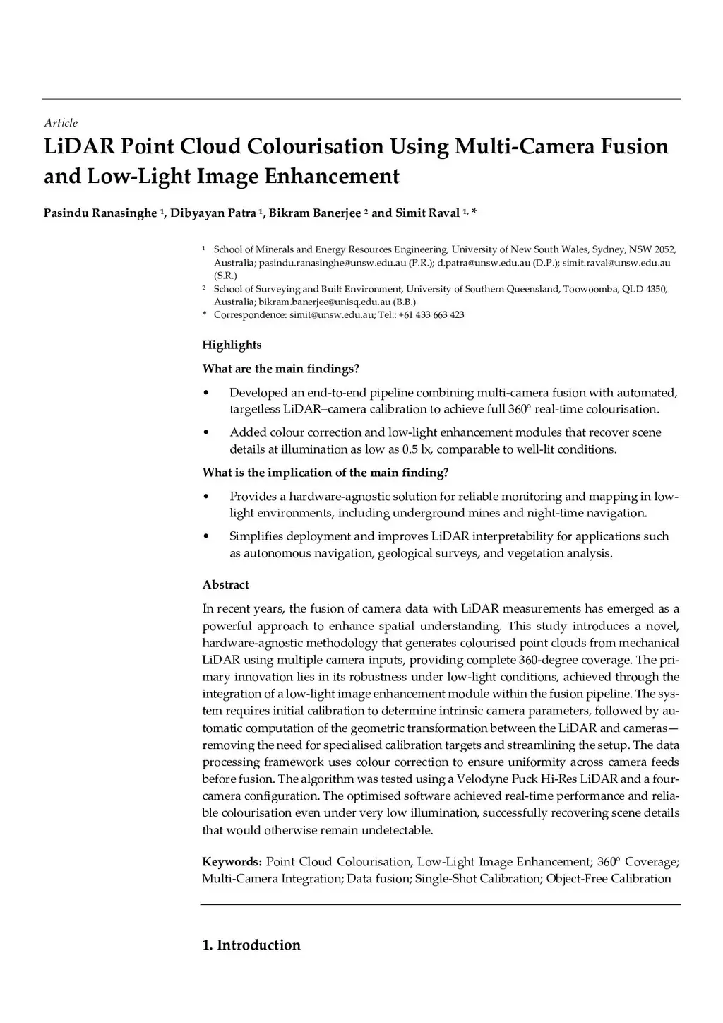 LiDAR Point Cloud Colourisation Using Multi-Camera Fusion and Low-Light Image Enhancement