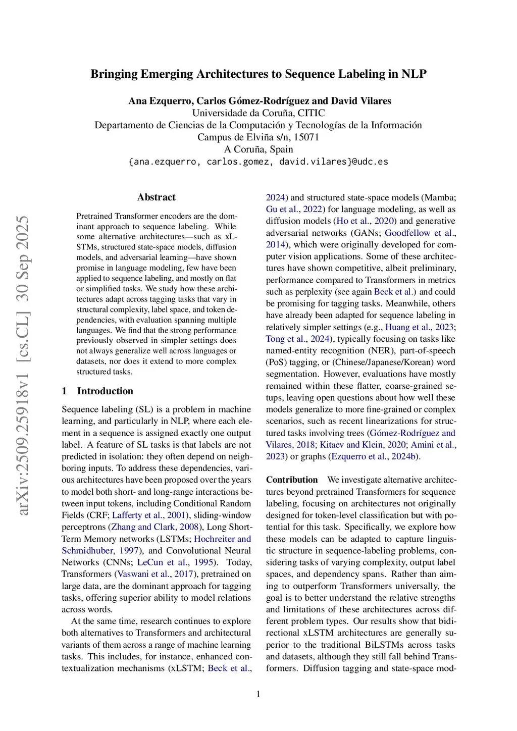 Bringing Emerging Architectures to Sequence Labeling in NLP
