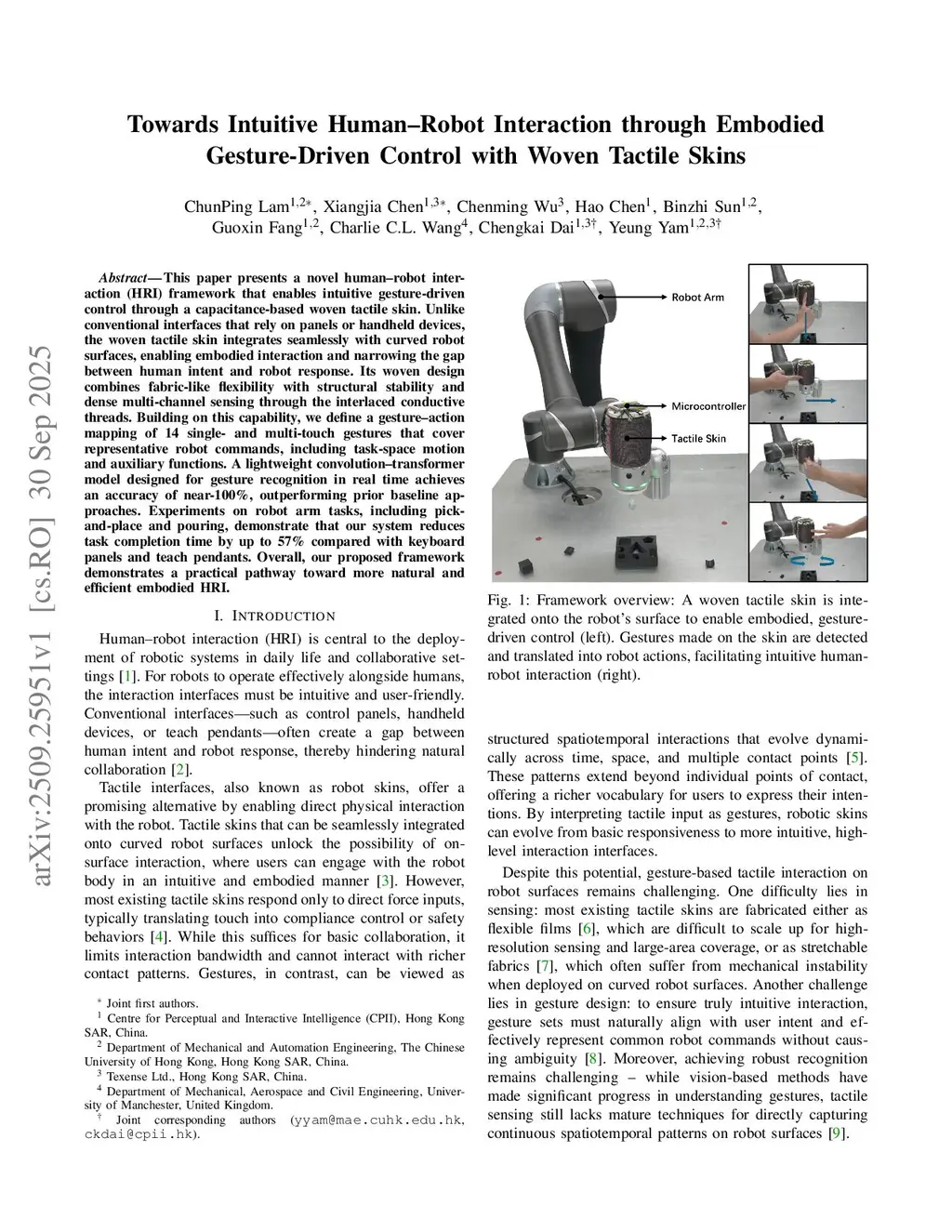 Towards Intuitive Human-Robot Interaction through Embodied Gesture-Driven Control with Woven Tactile Skins