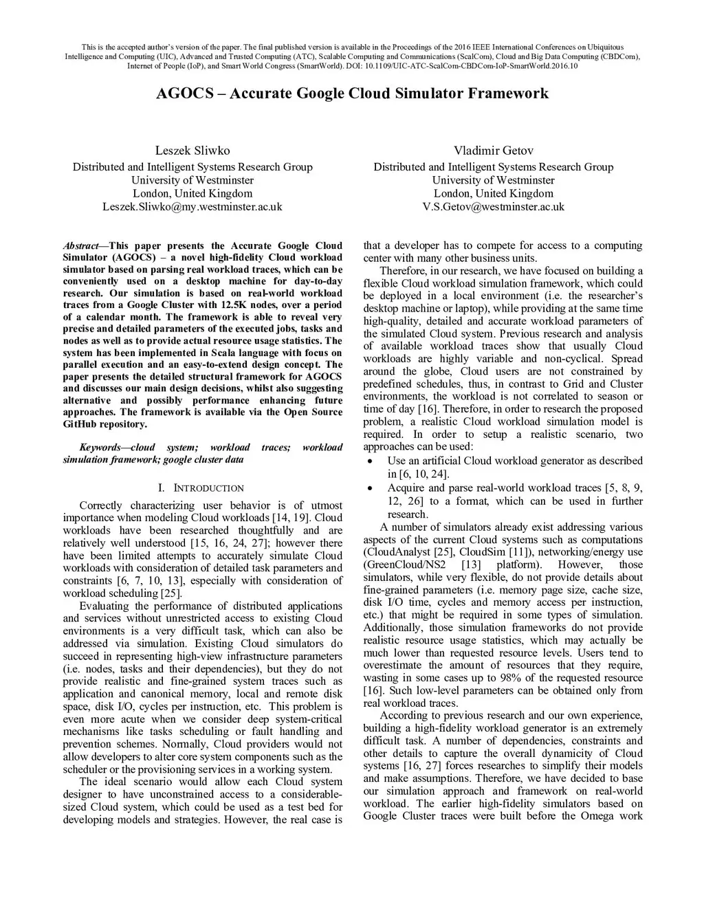 AGOCS -- Accurate Google Cloud Simulator Framework