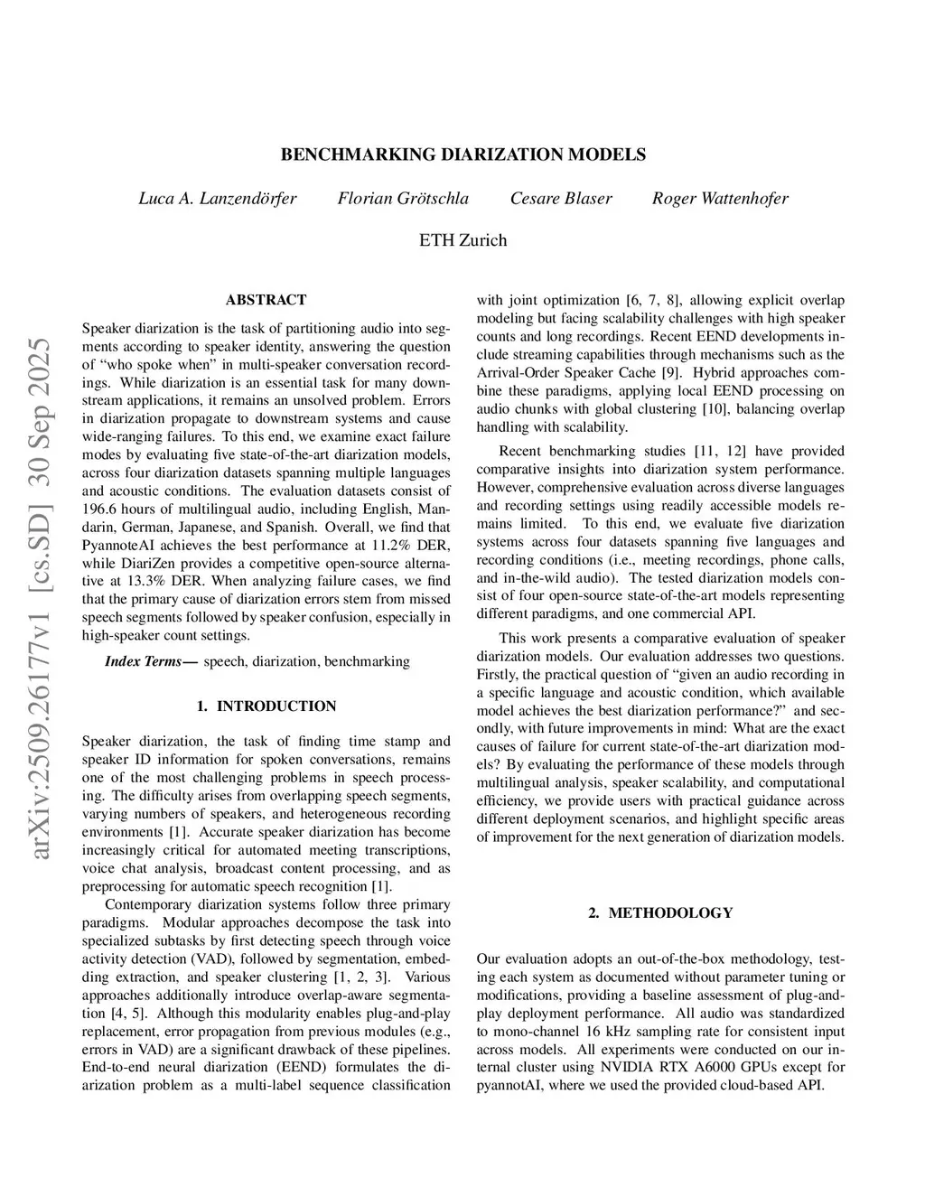 Benchmarking Diarization Models