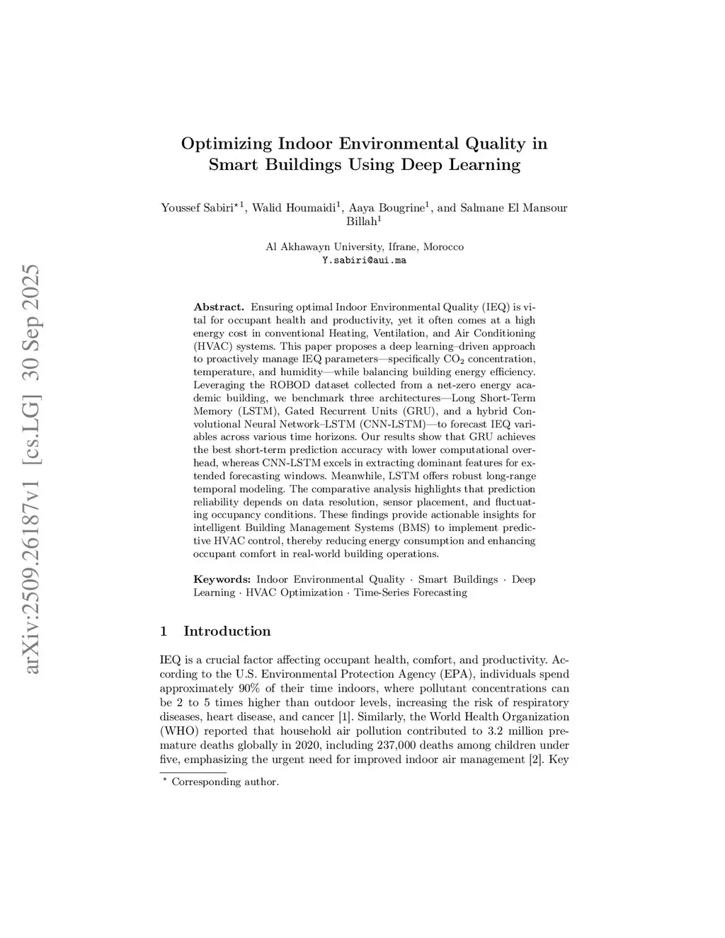 Optimizing Indoor Environmental Quality in Smart Buildings Using Deep Learning