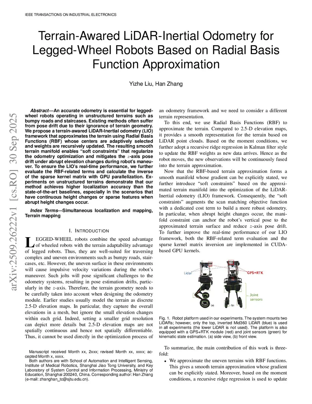 Terrain-Awared LiDAR-Inertial Odometry for Legged-Wheel Robots Based on Radial Basis Function Approximation