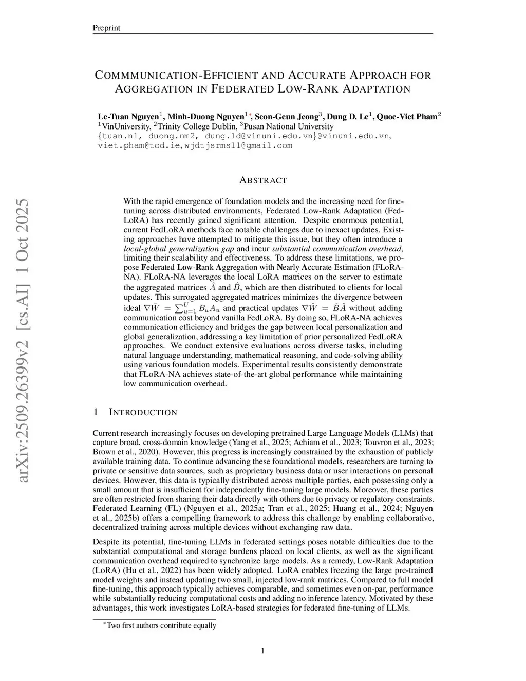 Communication-Efficient and Accurate Approach for Aggregation in Federated Low-Rank Adaptation