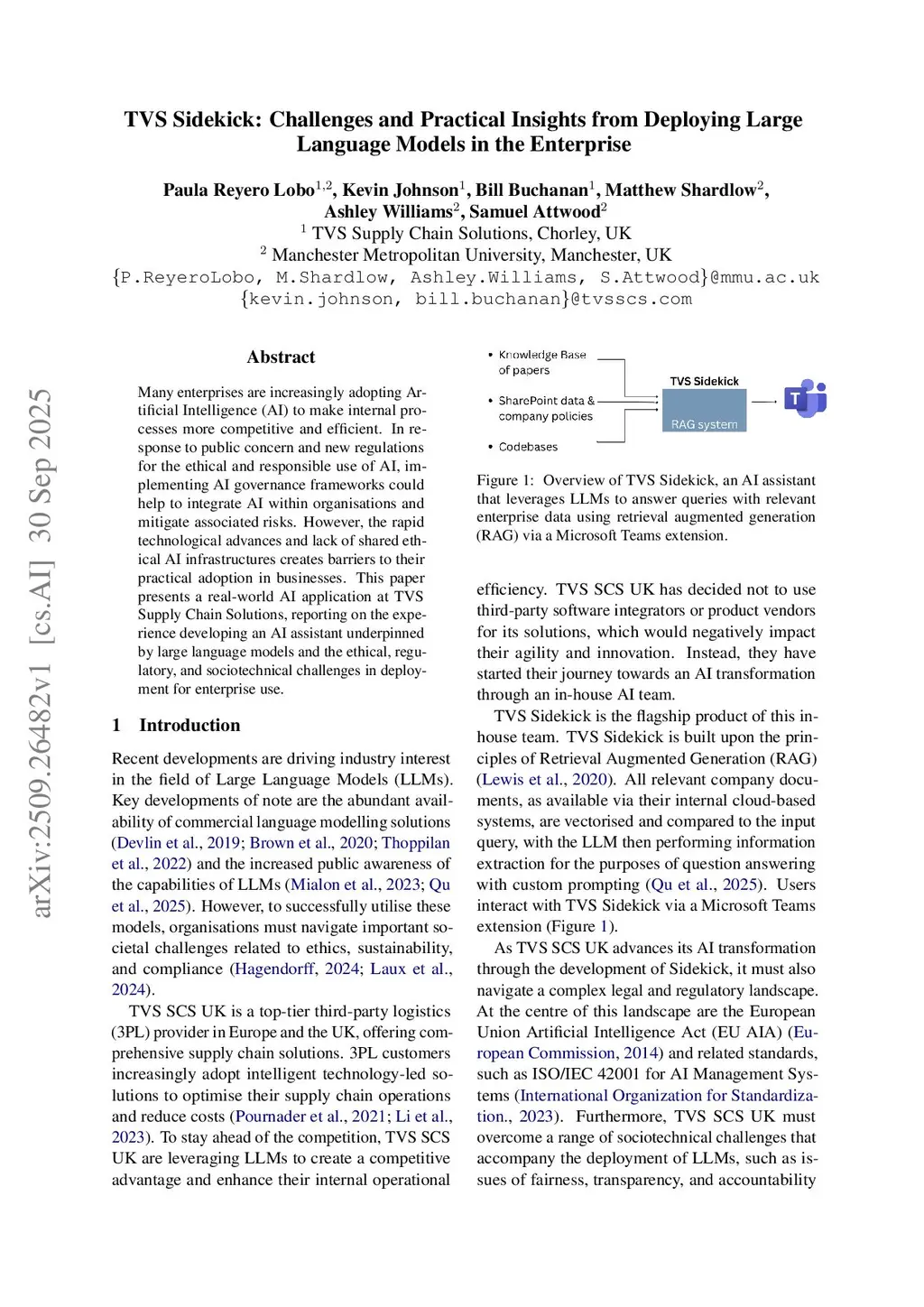 TVS Sidekick: Challenges and Practical Insights from Deploying Large Language Models in the Enterprise