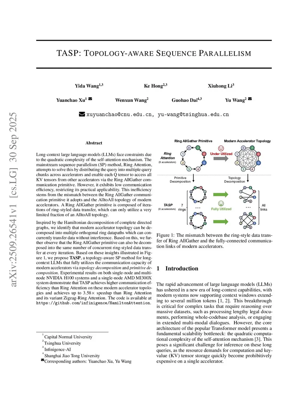 TASP: Topology-aware Sequence Parallelism