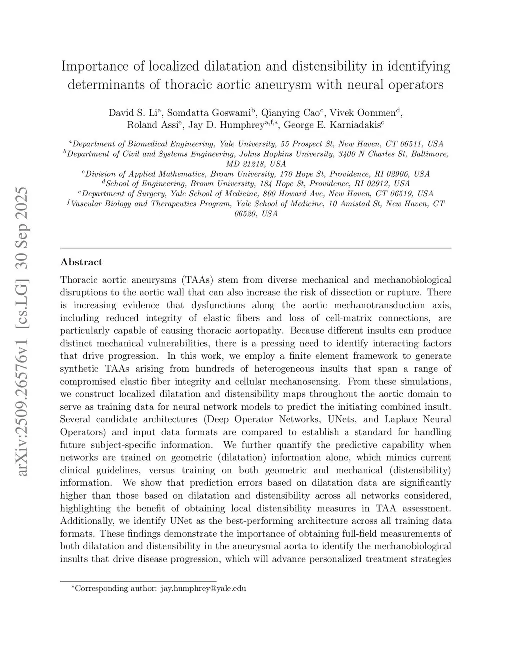 Importance of localized dilatation and distensibility in identifying determinants of thoracic aortic aneurysm with neural operators