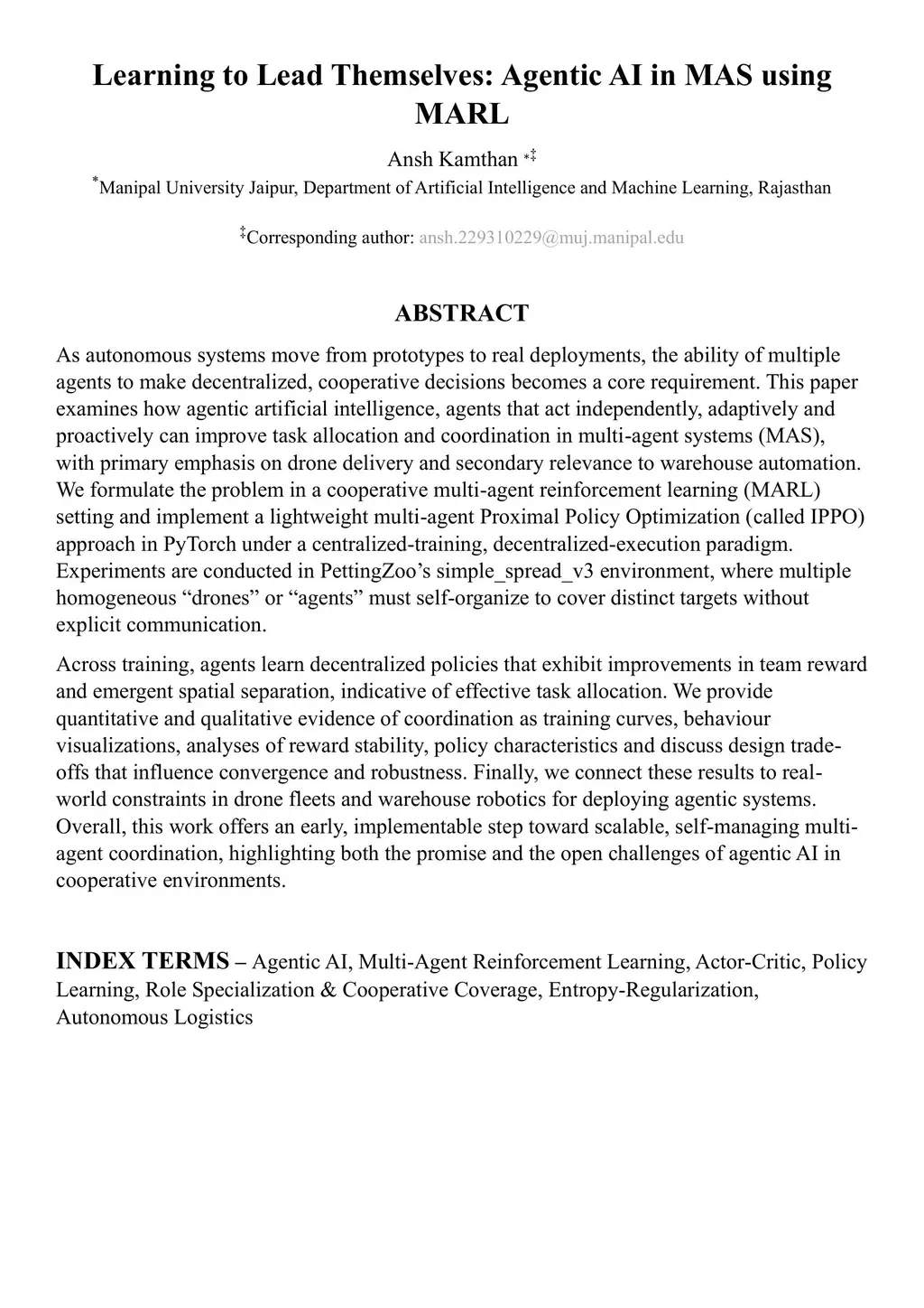 Learning to Lead Themselves: Agentic AI in MAS using MARL