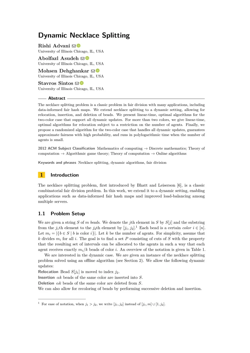 The necklace splitting problem is a classic problem in fair division with many applications, including data-informed fair hash maps. We extend necklace splitting to a dynamic setting, allowing for relocation, insertion, and deletion of beads. We present linear-time, optimal algorithms for the two-color case that support all dynamic updates. For more than two colors, we give linear-time, optimal algorithms for relocation subject to a restriction on the number of agents. Finally, we propose a randomized algorithm for the two-color case that handles all dynamic updates, guarantees approximate fairness with high probability, and runs in polylogarithmic time when the number of agents is small.