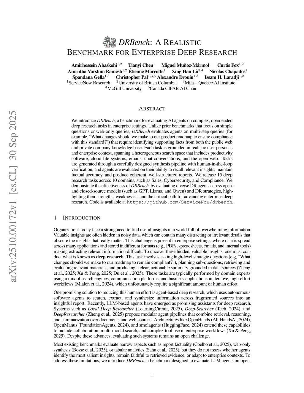 DRBench: A Realistic Benchmark for Enterprise Deep Research