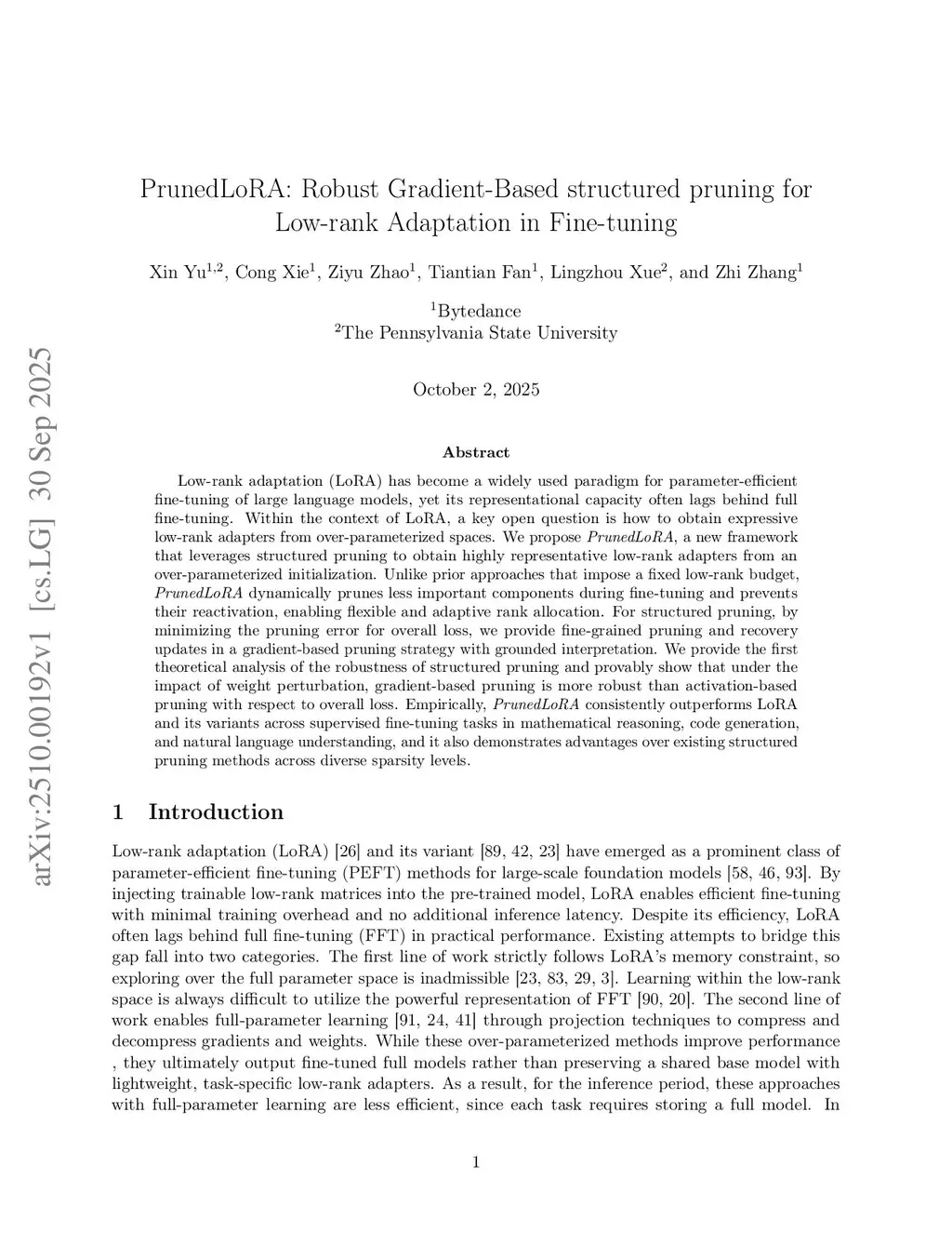 PrunedLoRA: Robust Gradient-Based structured pruning for Low-rank Adaptation in Fine-tuning