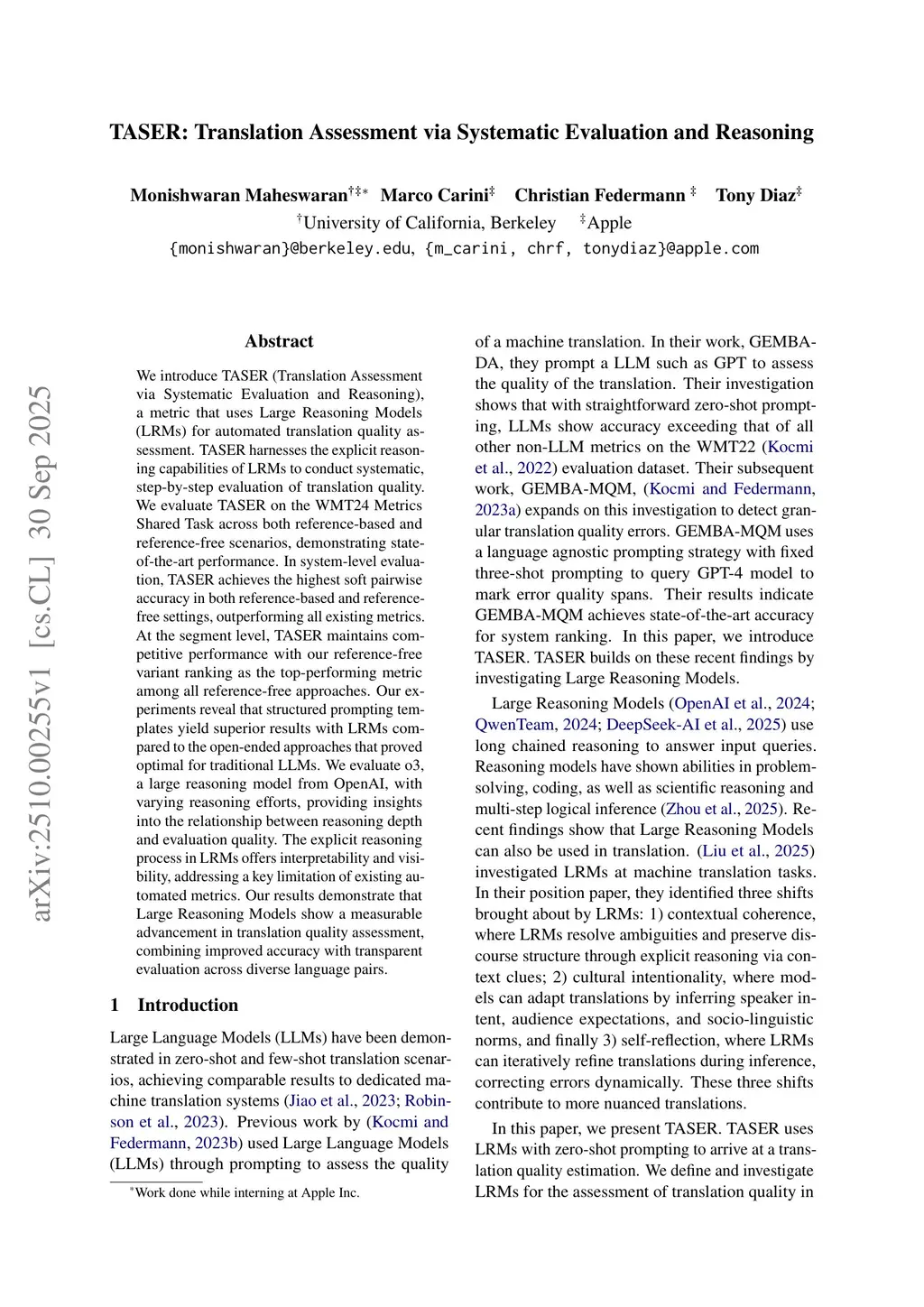 TASER: Translation Assessment via Systematic Evaluation and Reasoning