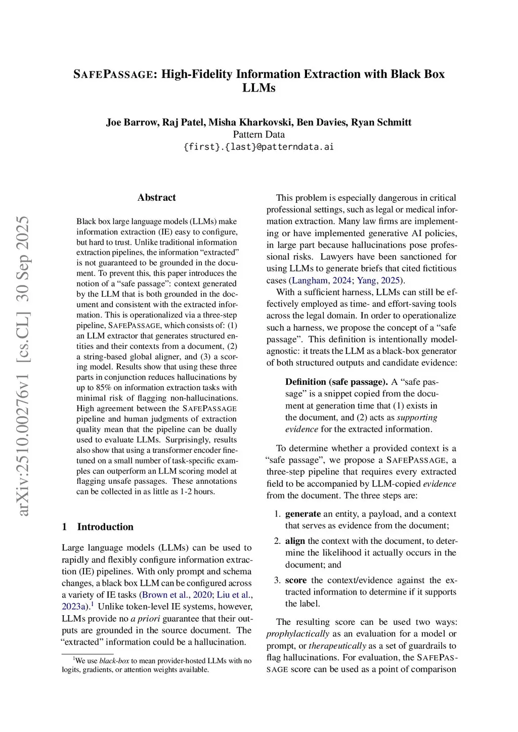 SafePassage: High-Fidelity Information Extraction with Black Box LLMs