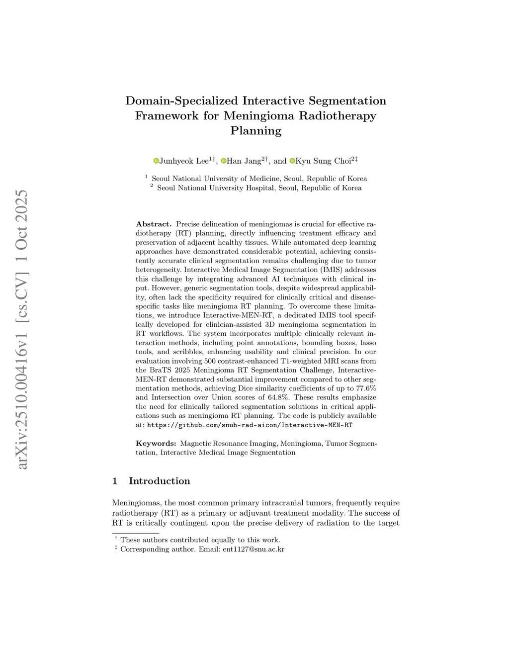 Domain-Specialized Interactive Segmentation Framework for Meningioma Radiotherapy Planning