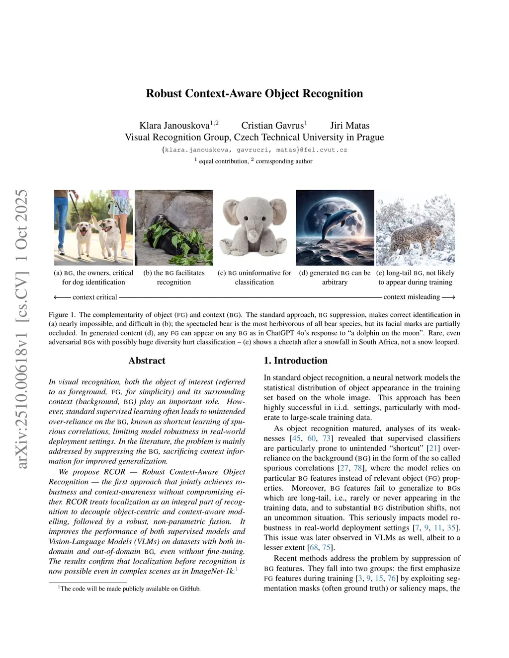 In visual recognition, both the object of interest (referred to as foreground, FG, for simplicity) and its surrounding context (background, BG) play an important role. However, standard supervised learning often leads to unintended over-reliance on the BG, known as shortcut learning of spurious correlations, limiting model robustness in real-world deployment settings. In the literature, the problem is mainly addressed by suppressing the BG, sacrificing context information for improved generalization.We propose RCOR -- Robust Context-Aware Object Recognition -- the first approach that jointly achieves robustness and context-awareness without compromising either. RCOR treats localization as an integral part of recognition to decouple object-centric and context-aware modelling, followed by a robust, non-parametric fusion. It improves the performance of both supervised models and VLM on datasets with both in-domain and out-of-domain BG, even without fine-tuning. The results confirm that localization before recognition is now possible even in complex scenes as in ImageNet-1k.