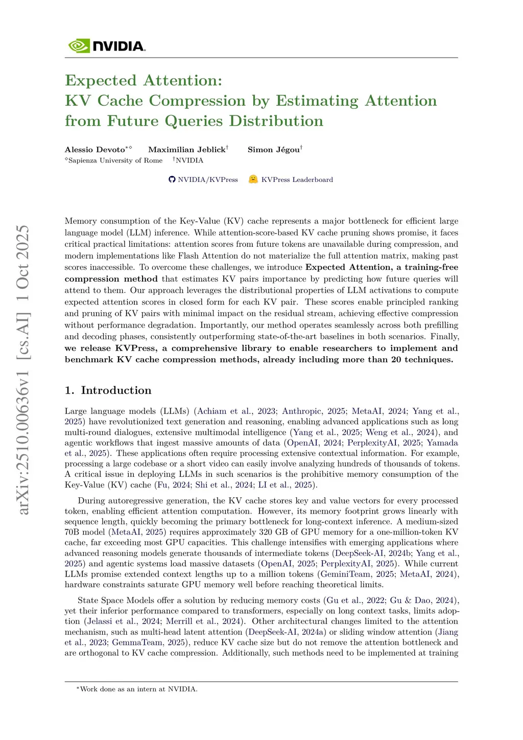 Expected Attention: KV Cache Compression by Estimating Attention from Future Queries Distribution