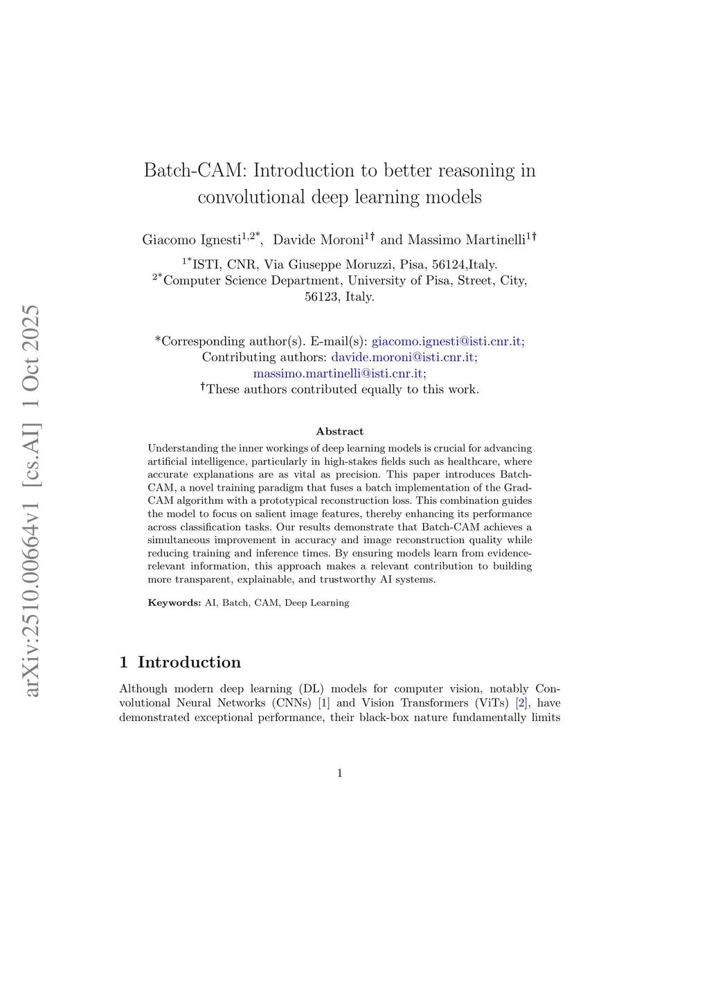 Batch-CAM: Introduction to better reasoning in convolutional deep learning models