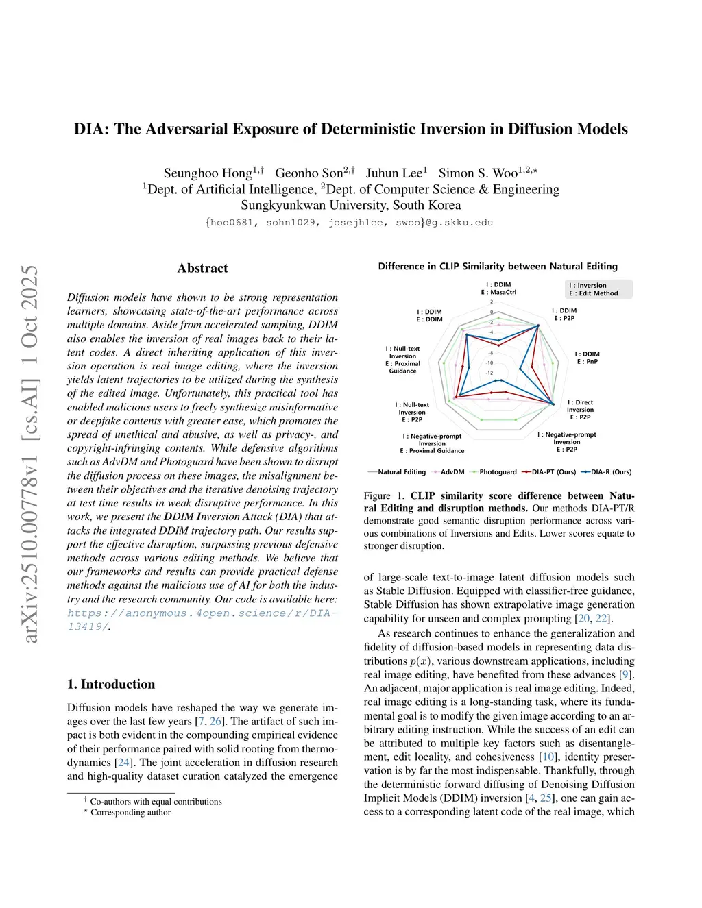 Diffusion models have shown to be strong representation learners, showcasing state-of-the-art performance across multiple domains. Aside from accelerated sampling, DDIM also enables the inversion of real images back to their latent codes. A direct inheriting application of this inversion operation is real image editing, where the inversion yields latent trajectories to be utilized during the synthesis of the edited image. Unfortunately, this practical tool has enabled malicious users to freely synthesize misinformative or deepfake contents with greater ease, which promotes the spread of unethical and abusive, as well as privacy-, and copyright-infringing contents. While defensive algorithms such as AdvDM and Photoguard have been shown to disrupt the diffusion process on these images, the misalignment between their objectives and the iterative denoising trajectory at test time results in weak disruptivethis http URLthis work, we present the DDIM Inversion Attack (DIA) that attacks the integrated DDIM trajectory path. Our results support the effective disruption, surpassing previous defensive methods across various editing methods. We believe that our frameworks and results can provide practical defense methods against the malicious use of AI for both the industry and the research community. Our code is available here:this https URL.