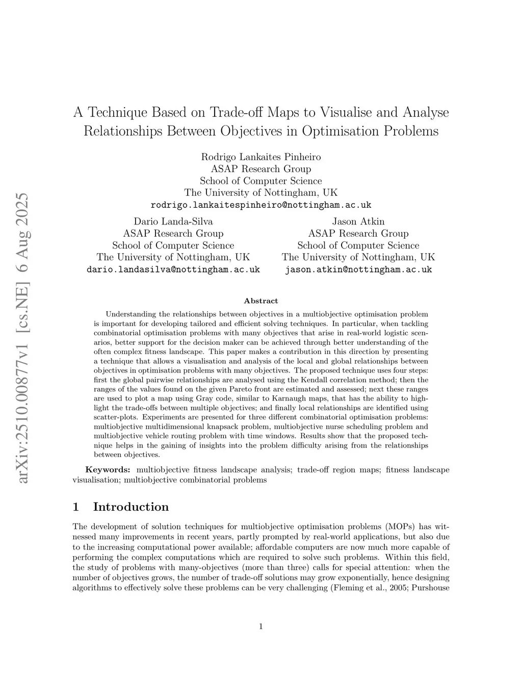 A Technique Based on Trade-off Maps to Visualise and Analyse Relationships Between Objectives in Optimisation Problems