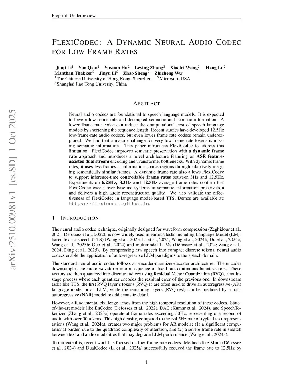 Neural audio codecs are foundational to speech language models. It is expected to have a low frame rate and decoupled semantic and acoustic information. A lower frame rate codec can reduce the computational cost of speech language models by shortening the sequence length. Recent studies have developed 12.5Hz low-frame-rate audio codecs, but even lower frame rate codecs remain underexplored. We find that a major challenge for very low frame rate tokens is missing semantic information. This paper introduces FlexiCodec to address this limitation. FlexiCodec improves semantic preservation with a dynamic frame rate approach and introduces a novel architecture featuring an ASR feature-assisted dual stream encoding and Transformer bottlenecks. With dynamic frame rates, it uses less frames at information-sparse regions through adaptively merging semantically similar frames. A dynamic frame rate also allows FlexiCodec to support inference-time controllable frame rates between 3Hz and 12.5Hz. Experiments on 6.25Hz, 8.3Hz and 12.5Hz average frame rates confirm that FlexiCodec excels over baseline systems in semantic information preservation and delivers a high audio reconstruction quality. We also validate the effectiveness of FlexiCodec in language model-based TTS. Demos are available at: this https URL