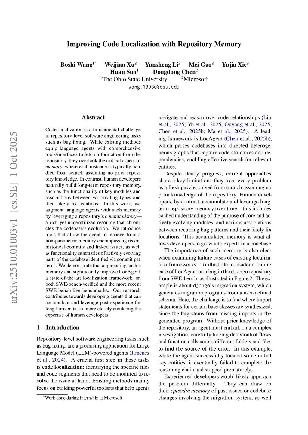 Code localization is a fundamental challenge in repository-level software engineering tasks such as bug fixing. While existing methods equip language agents with comprehensive tools/interfaces to fetch information from the repository, they overlook the critical aspect of memory, where each instance is typically handled from scratch assuming no prior repository knowledge. In contrast, human developers naturally build long-term repository memory, such as the functionality of key modules and associations between various bug types and their likely fix locations. In this work, we augment language agents with such memory by leveraging a repository's commit history -- a rich yet underutilized resource that chronicles the codebase's evolution. We introduce tools that allow the agent to retrieve from a non-parametric memory encompassing recent historical commits and linked issues, as well as functionality summaries of actively evolving parts of the codebase identified via commit patterns. We demonstrate that augmenting such a memory can significantly improve LocAgent, a state-of-the-art localization framework, on both SWE-bench-verified and the more recent SWE-bench-live benchmarks. Our research contributes towards developing agents that can accumulate and leverage past experience for long-horizon tasks, more closely emulating the expertise of human developers.