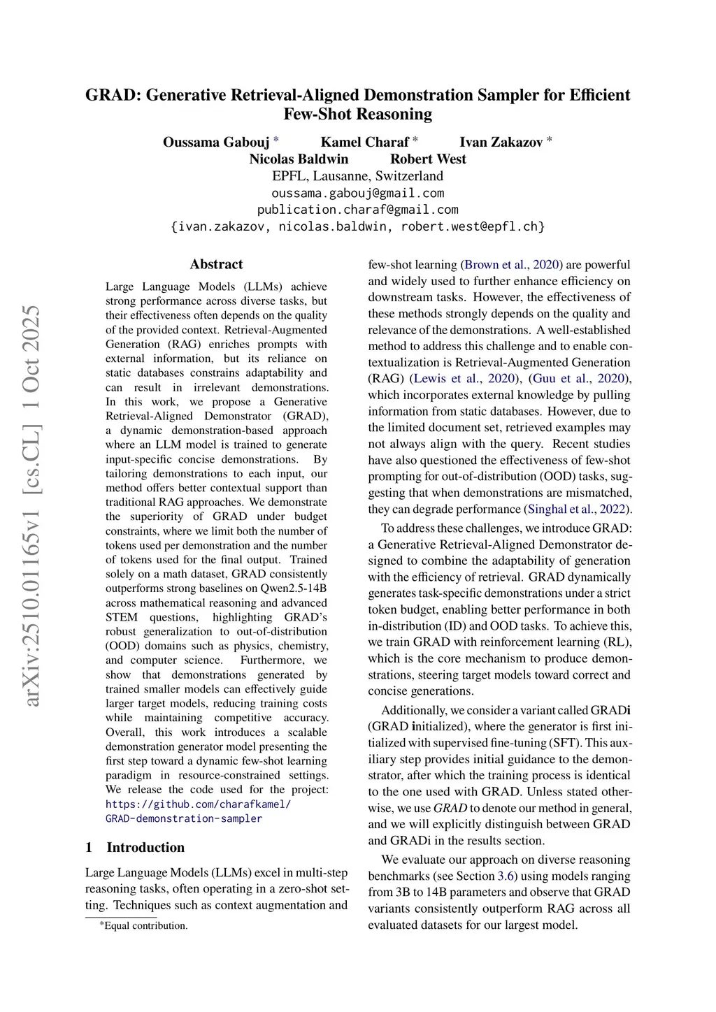 GRAD: Generative Retrieval-Aligned Demonstration Sampler for Efficient Few-Shot Reasoning