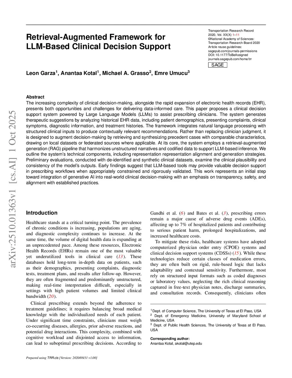Retrieval-Augmented Framework for LLM-Based Clinical Decision Support