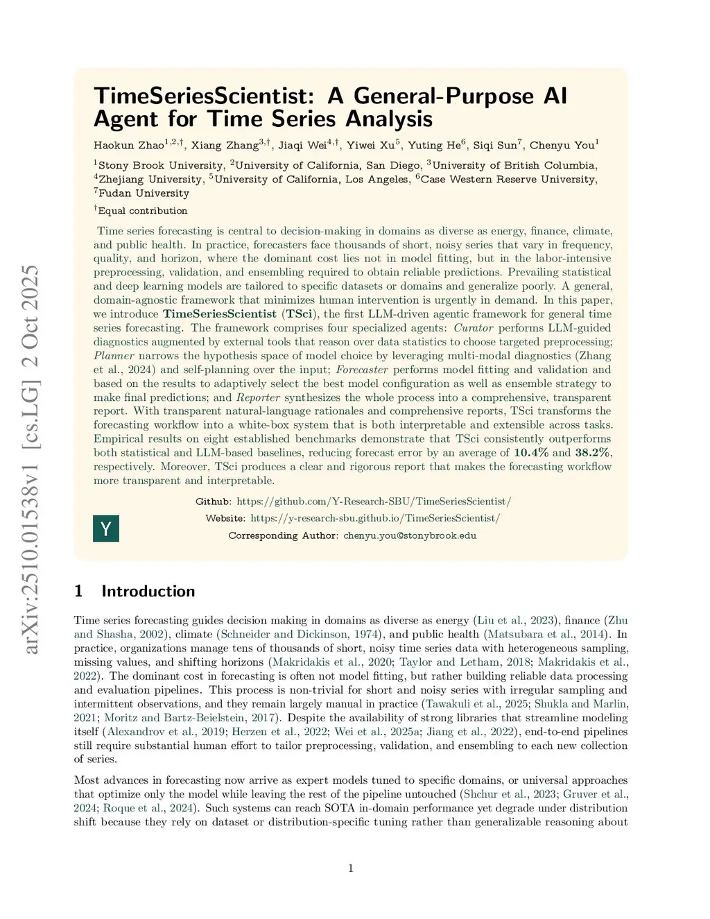 TimeSeriesScientist: A General-Purpose AI Agent for Time Series Analysis