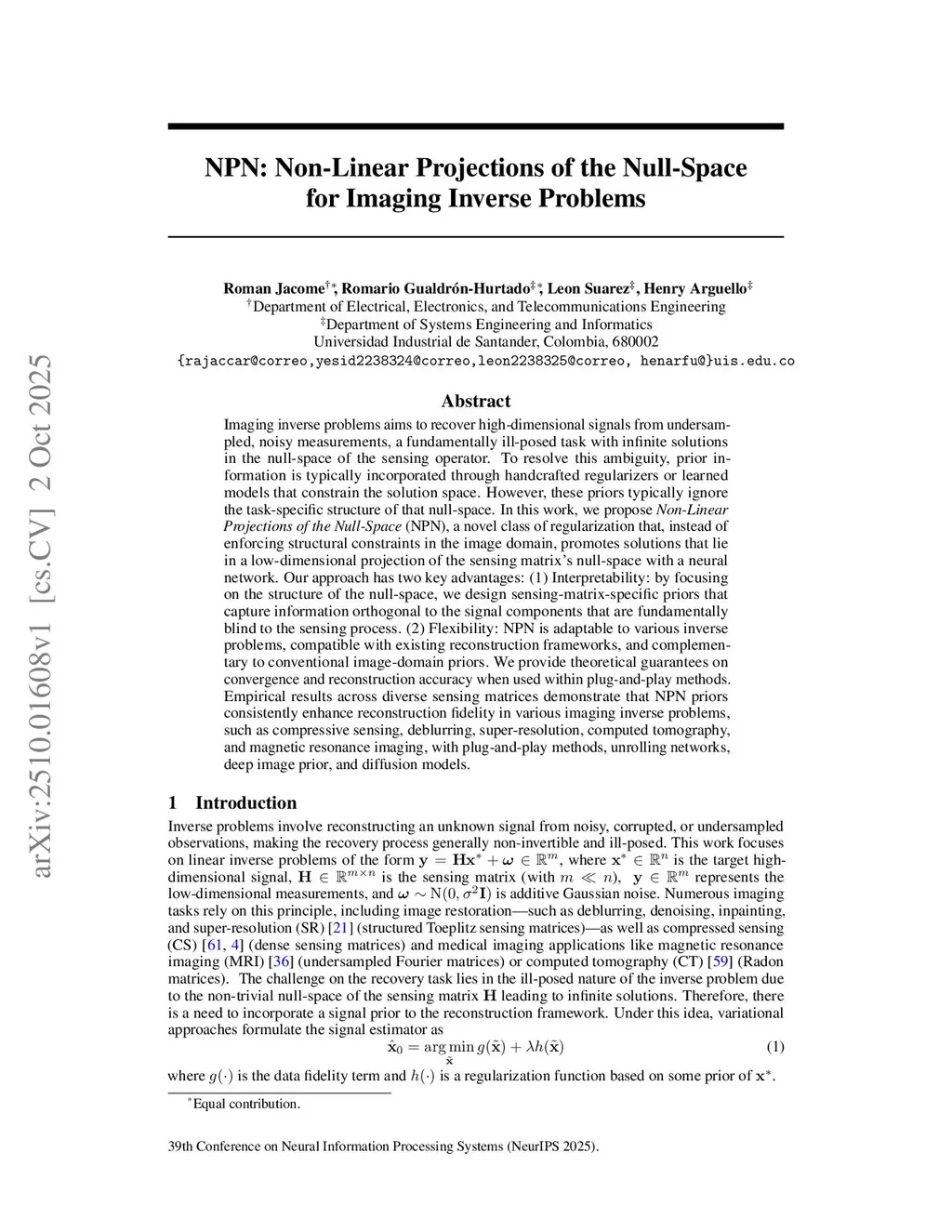 NPN: Non-Linear Projections of the Null-Space for Imaging Inverse Problems