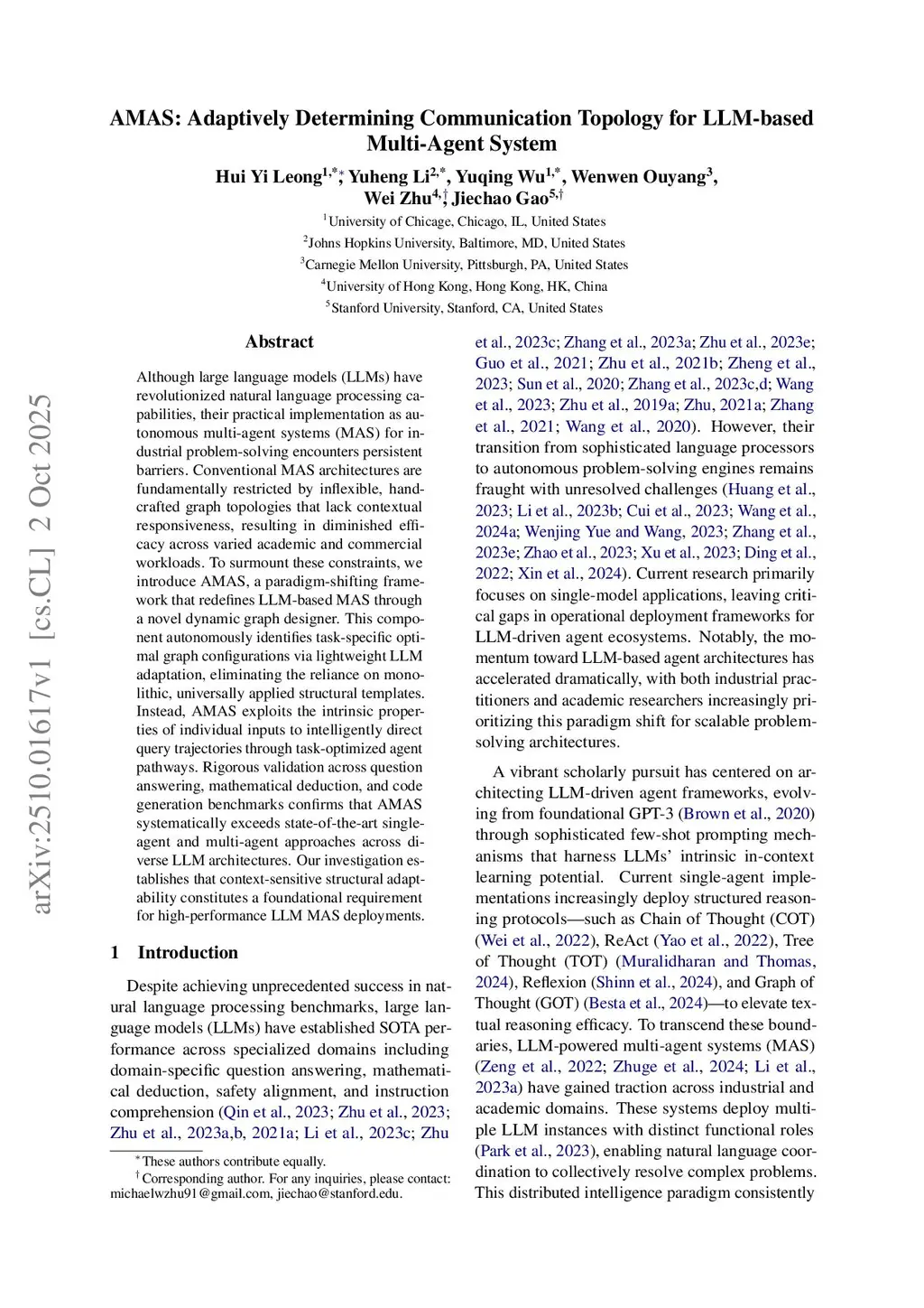AMAS: Adaptively Determining Communication Topology for LLM-based Multi-Agent System