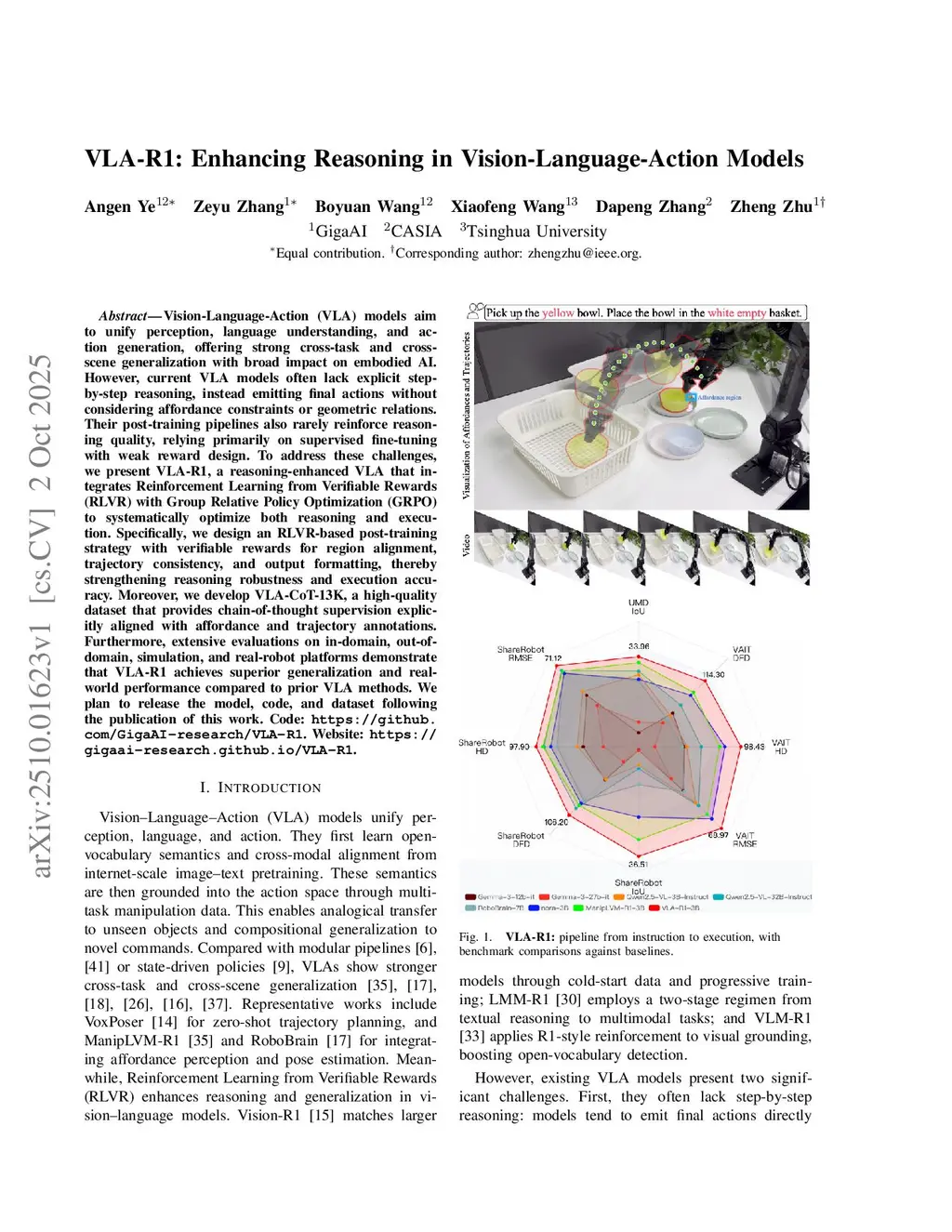 VLA-R1: Enhancing Reasoning in Vision-Language-Action Models