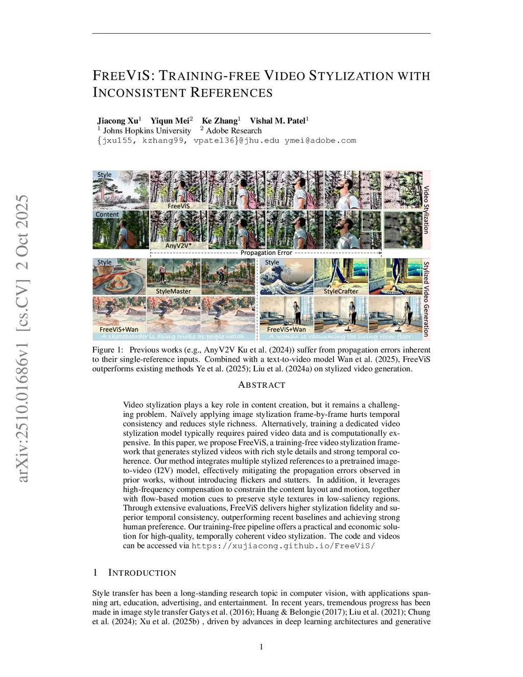 FreeViS: Training-free Video Stylization with Inconsistent References