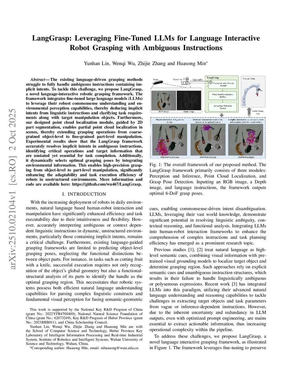 LangGrasp: Leveraging Fine-Tuned LLMs for Language Interactive Robot Grasping with Ambiguous Instructions