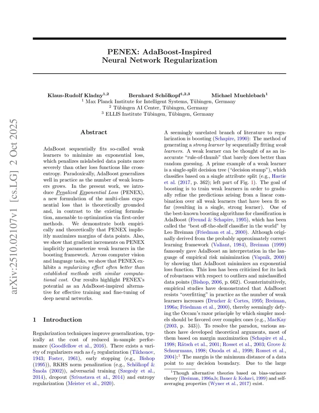 PENEX: AdaBoost-Inspired Neural Network Regularization