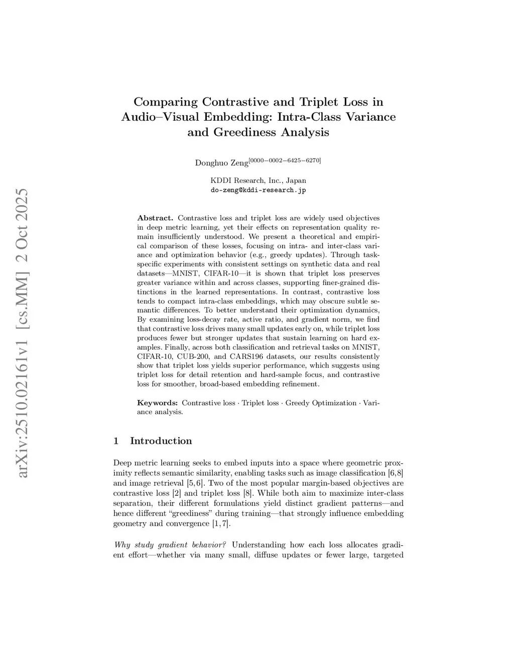 Contrastive loss and triplet loss are widely used objectives in deep metric learning, yet their effects on representation quality remain insufficiently understood. We present a theoretical and empirical comparison of these losses, focusing on intra- and inter-class variance and optimization behavior (e.g., greedy updates). Through task-specific experiments with consistent settings on synthetic data and real datasets-MNIST, CIFAR-10-it is shown that triplet loss preserves greater variance within and across classes, supporting finer-grained distinctions in the learned representations. In contrast, contrastive loss tends to compact intra-class embeddings, which may obscure subtle semantic differences. To better understand their optimization dynamics, By examining loss-decay rate, active ratio, and gradient norm, we find that contrastive loss drives many small updates early on, while triplet loss produces fewer but stronger updates that sustain learning on hard examples. Finally, across both classification and retrieval tasks on MNIST, CIFAR-10, CUB-200, and CARS196 datasets, our results consistently show that triplet loss yields superior performance, which suggests using triplet loss for detail retention and hard-sample focus, and contrastive loss for smoother, broad-based embedding refinement.