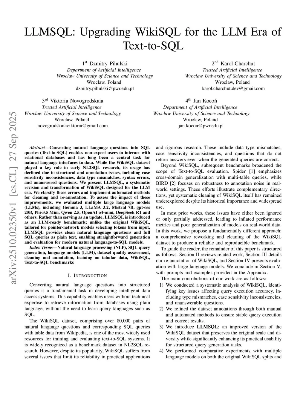 Converting natural language questions into SQL queries (Text-to-SQL) enables non-expert users to interact with relational databases and has long been a central task for natural language interfaces to data. While the WikiSQL dataset played a key role in early NL2SQL research, its usage has declined due to structural and annotation issues, including case sensitivity inconsistencies, data type mismatches, syntax errors, and unanswered questions. We present LLMSQL, a systematic revision and transformation of WikiSQL designed for the LLM era. We classify these errors and implement automated methods for cleaning and re-annotation. To assess the impact of these improvements, we evaluated multiple large language models (LLMs), including Gemma 3, LLaMA 3.2, Mistral 7B, gpt-oss 20B, Phi-3.5 Mini, Qwen 2.5, OpenAI o4-mini, DeepSeek R1 and others. Rather than serving as an update, LLMSQL is introduced as an LLM-ready benchmark: unlike the original WikiSQL, tailored for pointer-network models selecting tokens from input, LLMSQL provides clean natural language questions and full SQL queries as plain text, enabling straightforward generation and evaluation for modern natural language-to-SQL models.