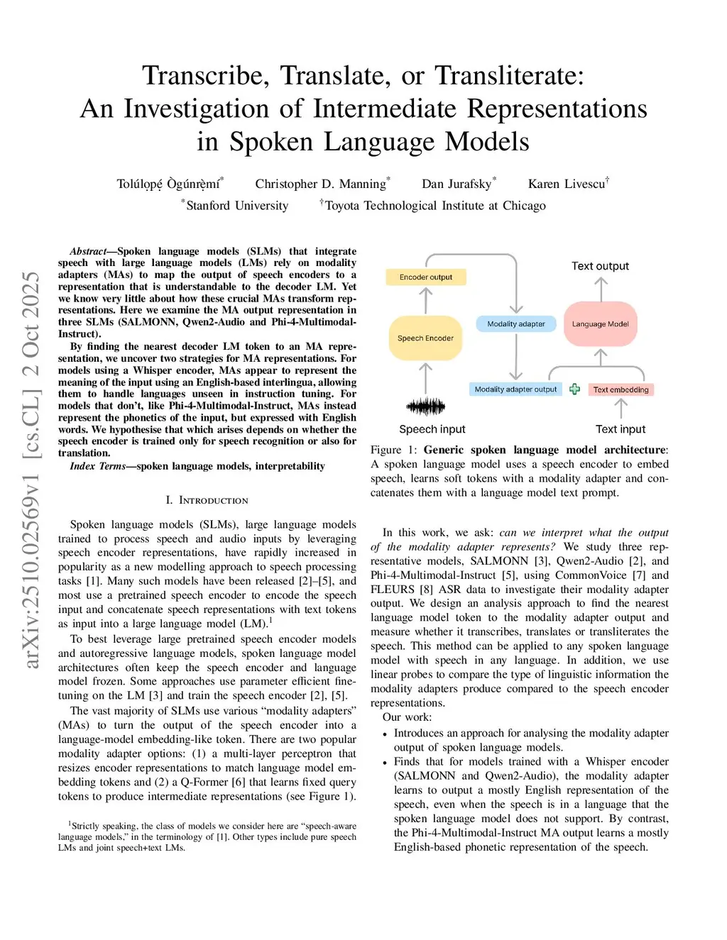 Transcribe, Translate, or Transliterate: An Investigation of Intermediate Representations in Spoken Language Models