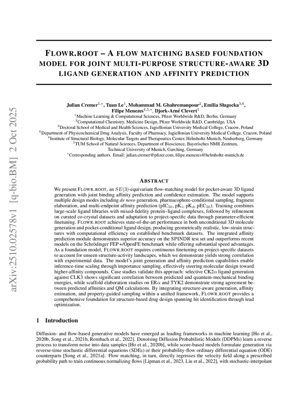 FLOWR.root: A flow matching based foundation model for joint multi-purpose structure-aware 3D ligand generation and affinity prediction