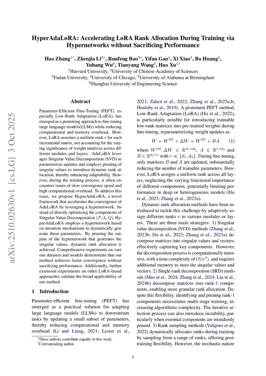 Parameter-Efficient Fine-Tuning (PEFT), especially Low-Rank Adaptation (LoRA), has emerged as a promising approach to fine-tuning large language models(LLMs) while reducing computational and memory overhead. However, LoRA assumes a uniform rank \textit{r} for each incremental matrix, not accounting for the varying significance of weight matrices across different modules and layers. AdaLoRA leverages Singular Value Decomposition (SVD) to parameterize updates and employs pruning of singular values to introduce dynamic rank allocation, thereby enhancing adaptability. However, during the training process, it often encounters issues of slow convergence speed and high computational overhead. To address this issue, we propose HyperAdaLoRA, a novel framework that accelerates the convergence of AdaLoRA by leveraging a hypernetwork. Instead of directly optimizing the components of Singular Value Decomposition , HyperAdaLoRA employs a hypernetwork based on attention mechanisms to dynamically generate these parameters. By pruning the outputs of the hypernetwork that generates the singular values, dynamic rank allocation is achieved. Comprehensive experiments on various datasets and models demonstrate that our method achieves faster convergence without sacrificing performance. Additionally, further extension experiments on other LoRA-based approaches validate the broad applicability of our method.