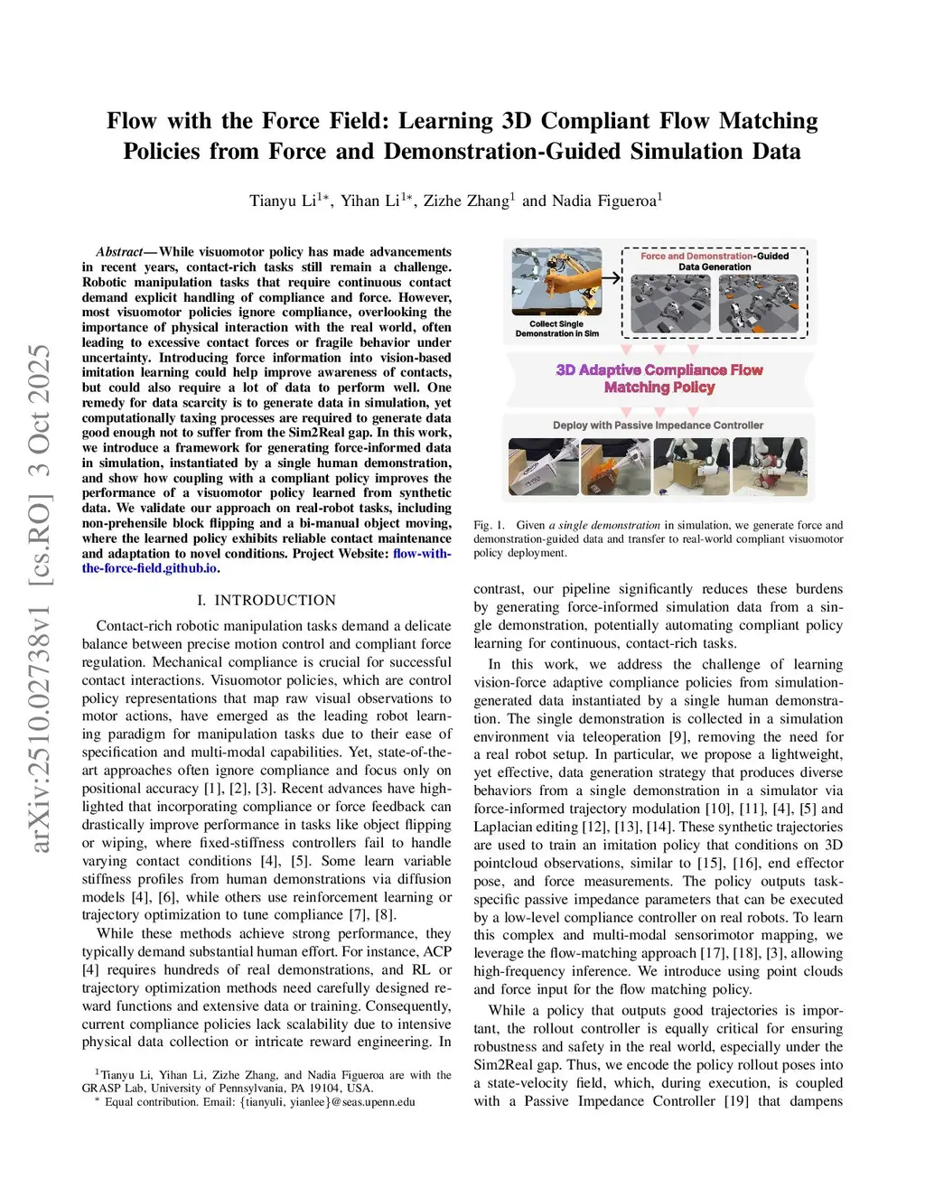 Flow with the Force Field: Learning 3D Compliant Flow Matching Policies from Force and Demonstration-Guided Simulation Data